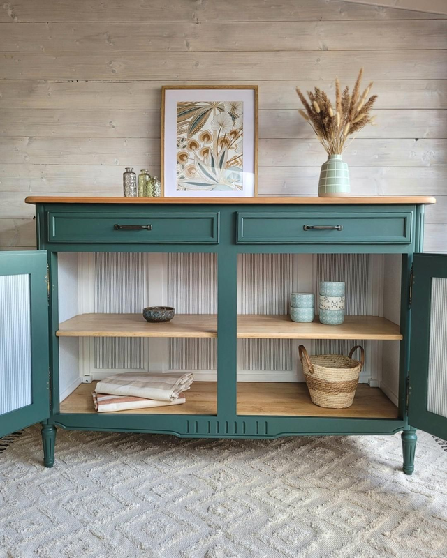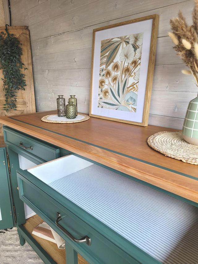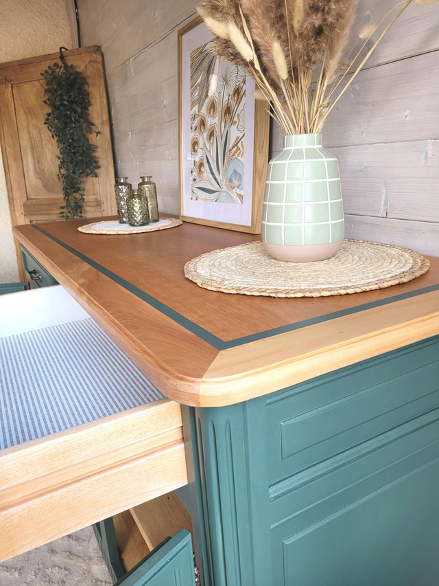 Ce meuble est rénové avec des peintures françaises respectueuses de l'environnement. Sans solvant ni COV.