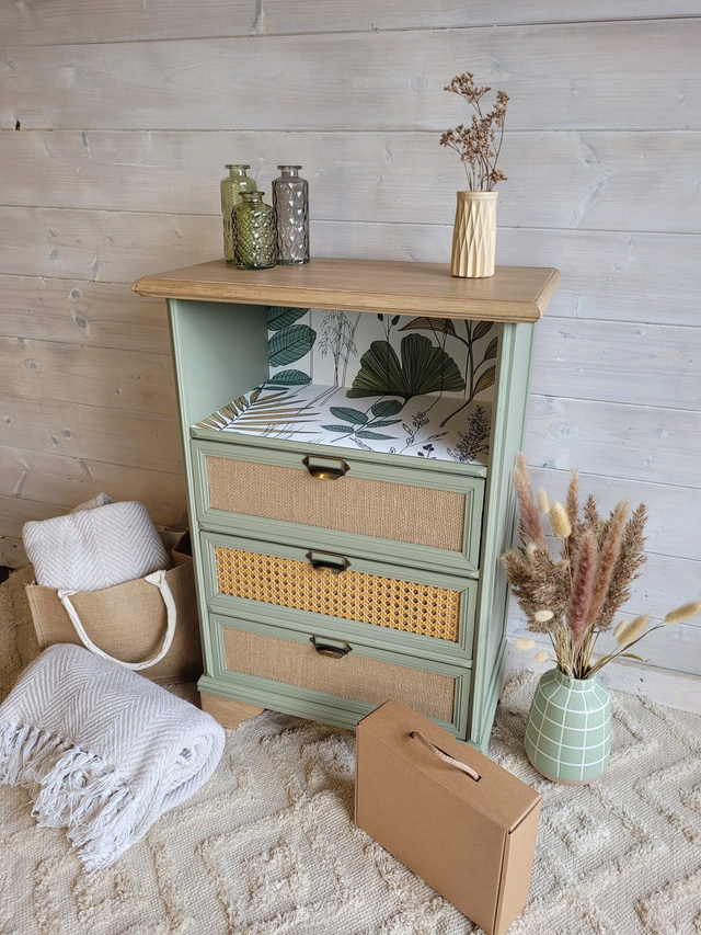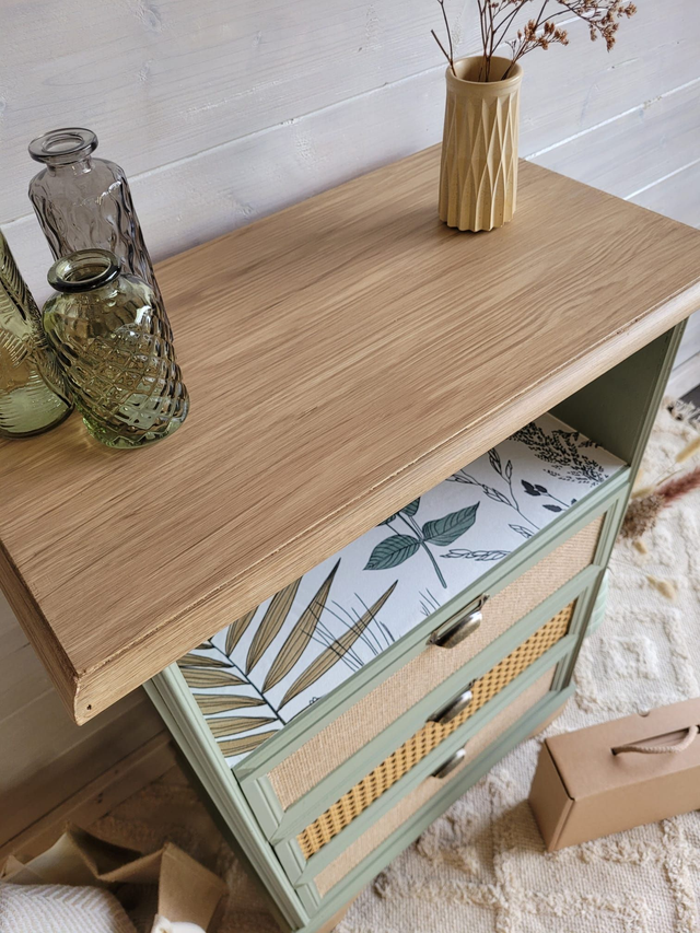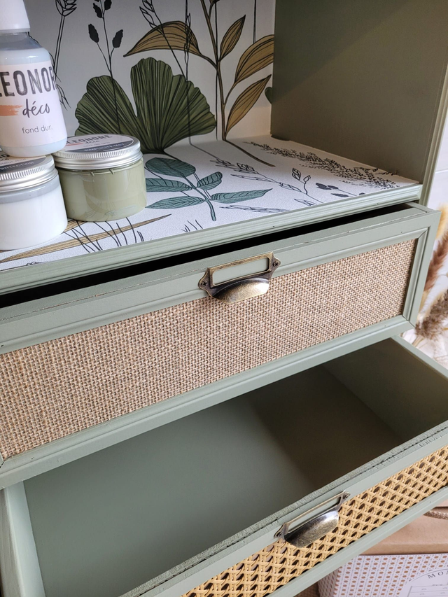 Ce meuble est rénové de façon éco-responsable en utilisant les produits Français de la marque Eléonore Déco.