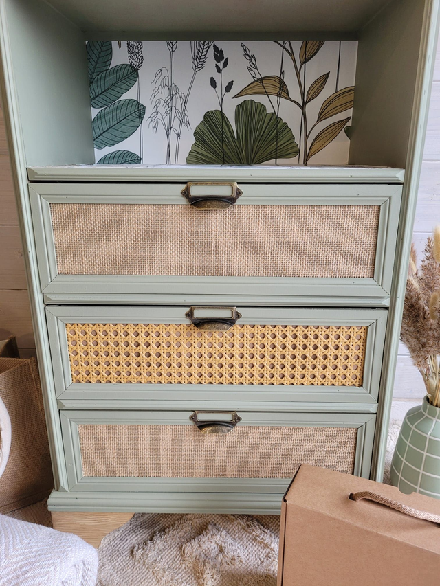 Ce jolie chiffonnier est composé d’une niche ouverte et de trois tiroirs habillés de cannage et toile de jute pour un style tendance et naturel.